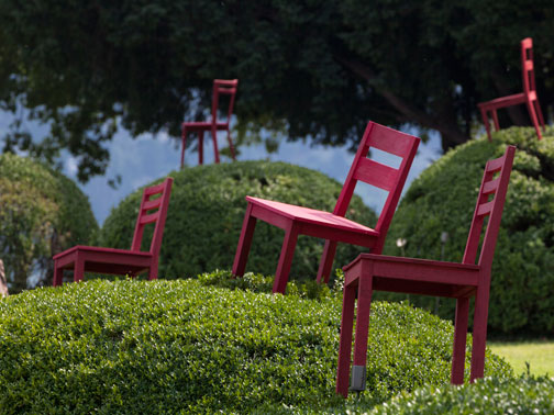 Punto di partenza sono 50 sedie rosse di legno, originariamente impiegate per un’installazione dell’artista svizzero Daniel Berset a Villa Erba sul lago di Como per Orticolario e successivamente donate a Sim-patia per la realizzazione di questo progetto benefico.