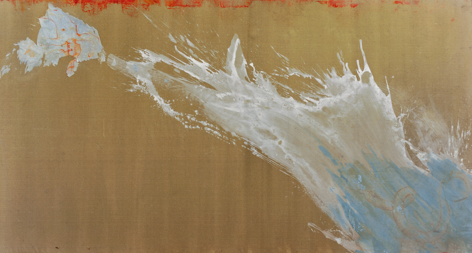 TRA LE TUE FAUCI “, tempera su tela + sanguigna, cm 200×350 anno 1981