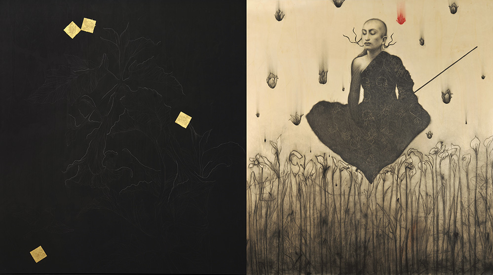 collezione_k35_mosca_mantra_matita_oro_inciisione_su_tavola_cm100x200_2012