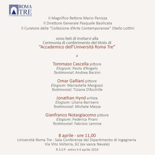 Questa onorificenza è una delle iniziative artistico-culturali più innovative e qualificanti dell’Università Roma Tre, che si affianca alla realizzazione della “Collezione d’Arte Contemporanea”: l’una e l’altra si inquadrano in un orizzonte di intervento strategico nella politica culturale dell’Ateneo, che vede appunto nella diffusione e valorizzazione nell’arte e degli artisti contemporanei un terreno privilegiato per la promozione della qualità e dell’eccellenza della creatività italiana.
