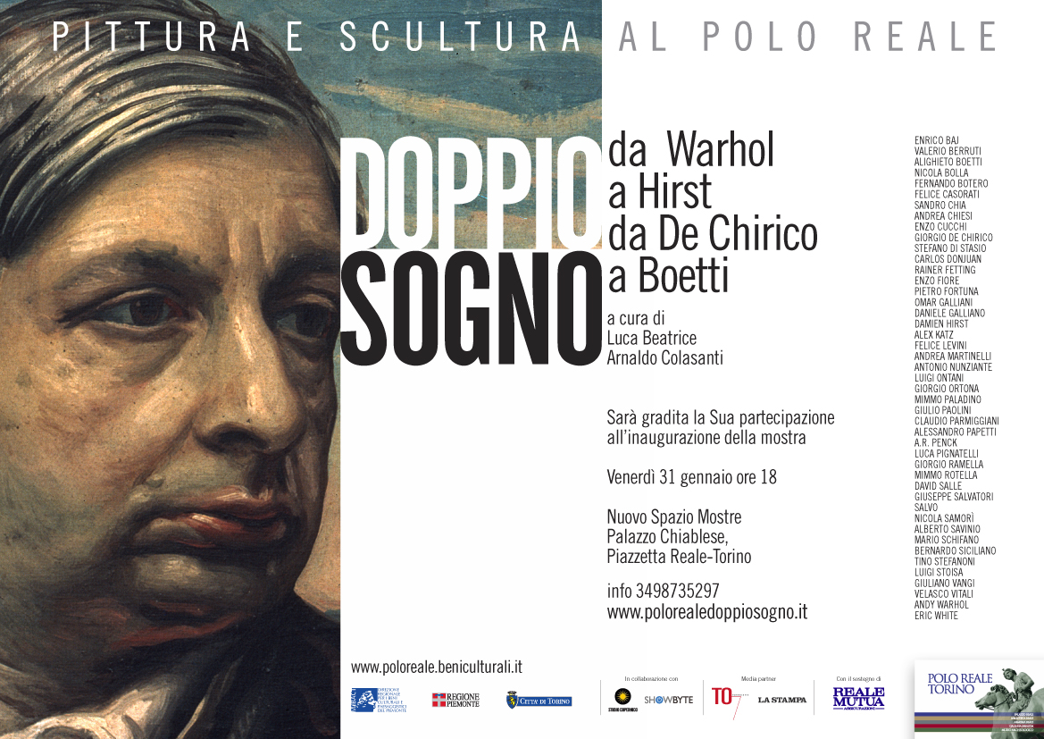 “Una passeggiata tra Novecento e contemporanea attraverso una cinquantina di opere, in una modalità dialogica e non cronologica, con accostamenti talora impliciti altrove azzardati, naturali eppure bizzarri – spiega Luca Beatrice, co-curatore con Arnaldo Colasanti di ‘Doppio Sogno’ – Da De Chirico a Andy Warhol, da Felice Casorati ad Alighiero Boetti, da Alberto Savinio a Damien Hirst, tanto per citare alcuni dei protagonisti. Oppure, per meglio dire, dalla Metafisica alla Pop Art, ad esempio di Mario Schifano, Enrico Baj e Mimmo Rotella per rimanere in Italia, e ovviamente l’icona Pop Andy Warhol. Dall’Arte Povera (Boetti, Giulio Paolini, in parte Claudio Parmiggiani) alla Transavanguardia (sia quella italiana di Enzo Cucchi e Sandro Chia sia la tedesca AR Penck e Rainer Fetting, fino a quella americana di David Salle; dalla nuova figurazione italiana (qui i casi interessanti sono molti, Daniele Galliano, Valerio Berruti, Andrea Martinelli, Luca Pignatelli, Velasco, Bernardo Siciliano, Alessandro Papetti, Giorgio Ortona ecc…) all’era globale (il giovane Carlos Donjuan, il maestro colombiano Fernando Botero)”.