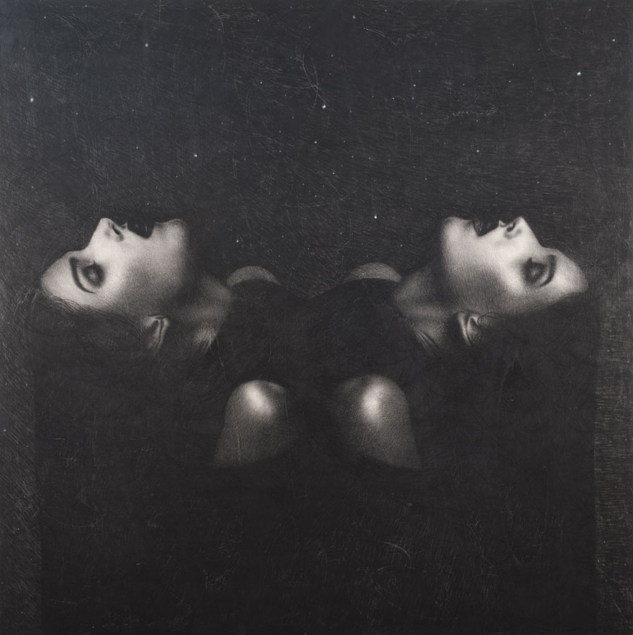 Disegno Siamese, matita nera su tavola di pioppo, 150×150 cm, 2011