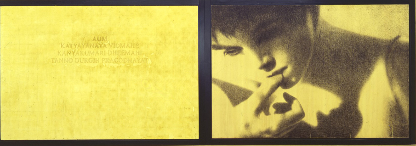 mantra_per_laura_carboncino_su_tavola_oro_in_foglia_cm220x640_1997-98b