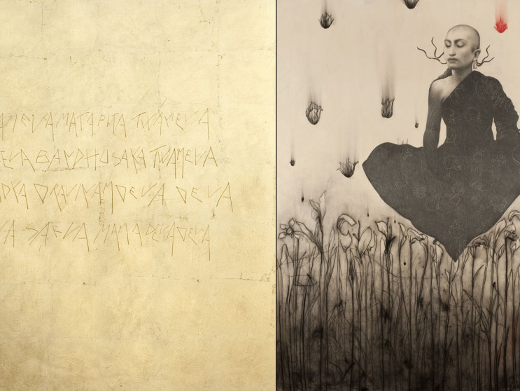 Le preghiere d’occidente si fondono con quelle d’oriente attraverso il rito dell’oro e del segno. Contaminazioni del presente che mantengono vivo lo spirito del tempo.