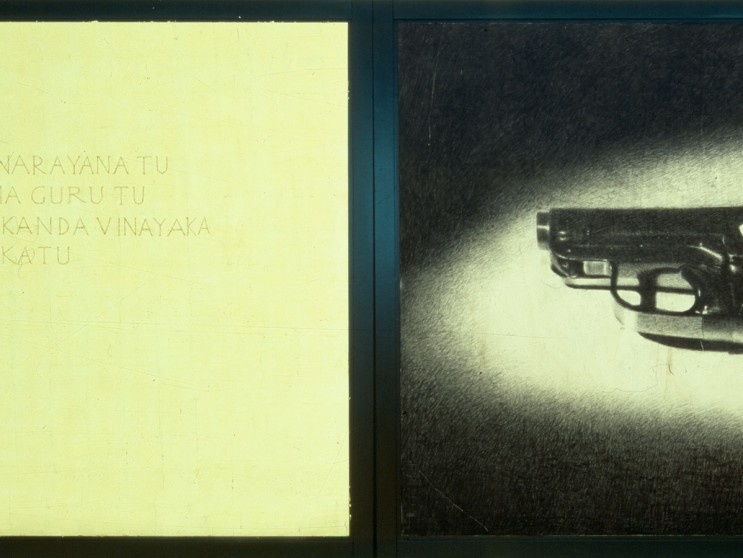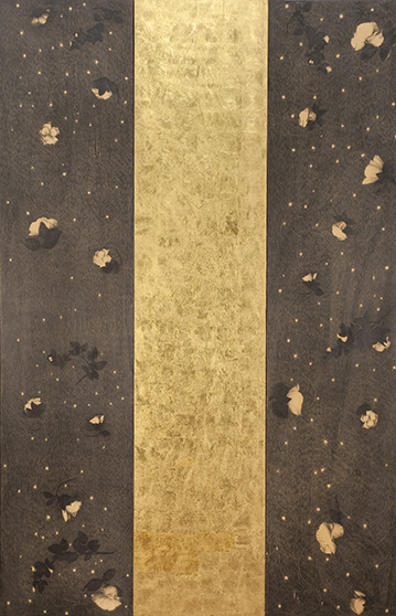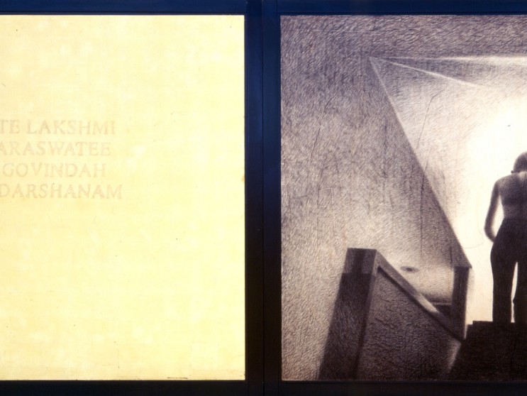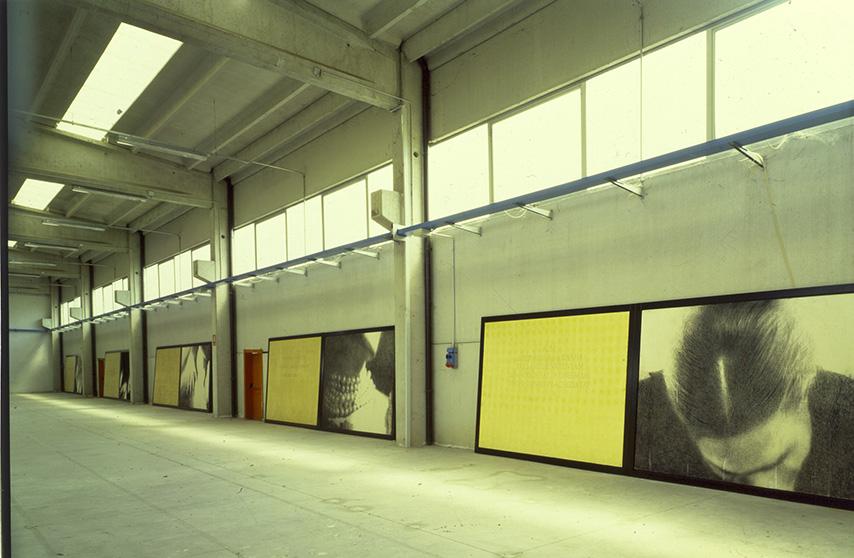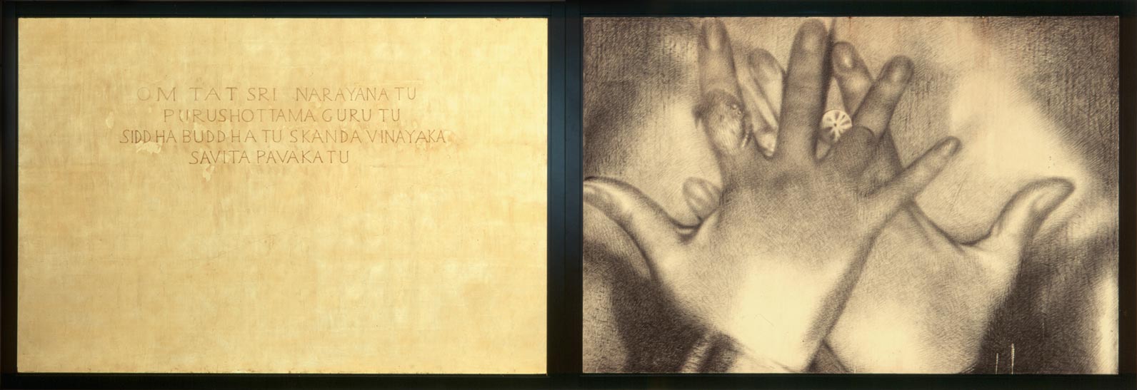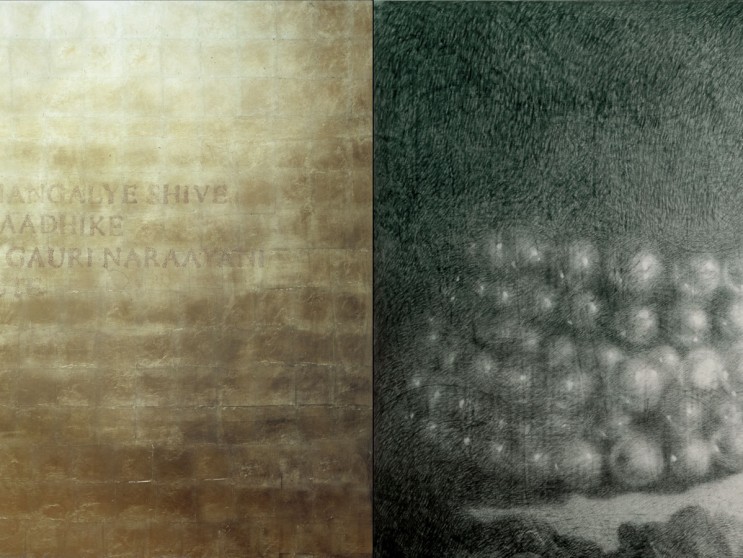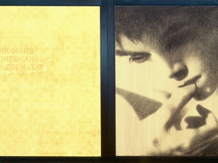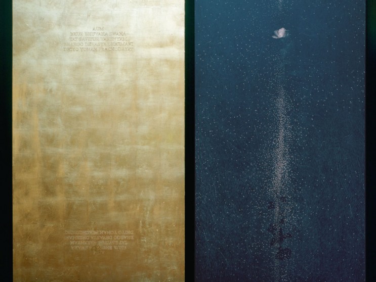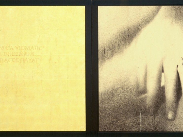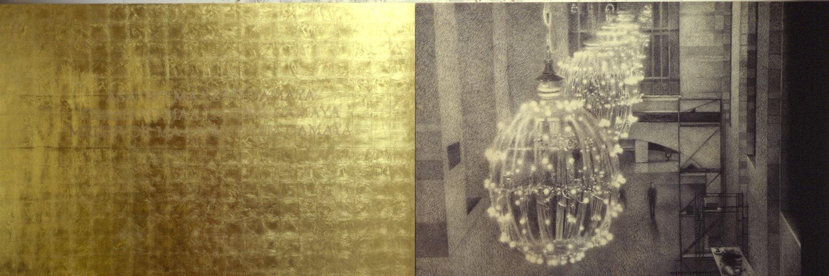 Mantra, carboncino, matita, oro su tavola, cm 220 x 640, 1997 – 1998.